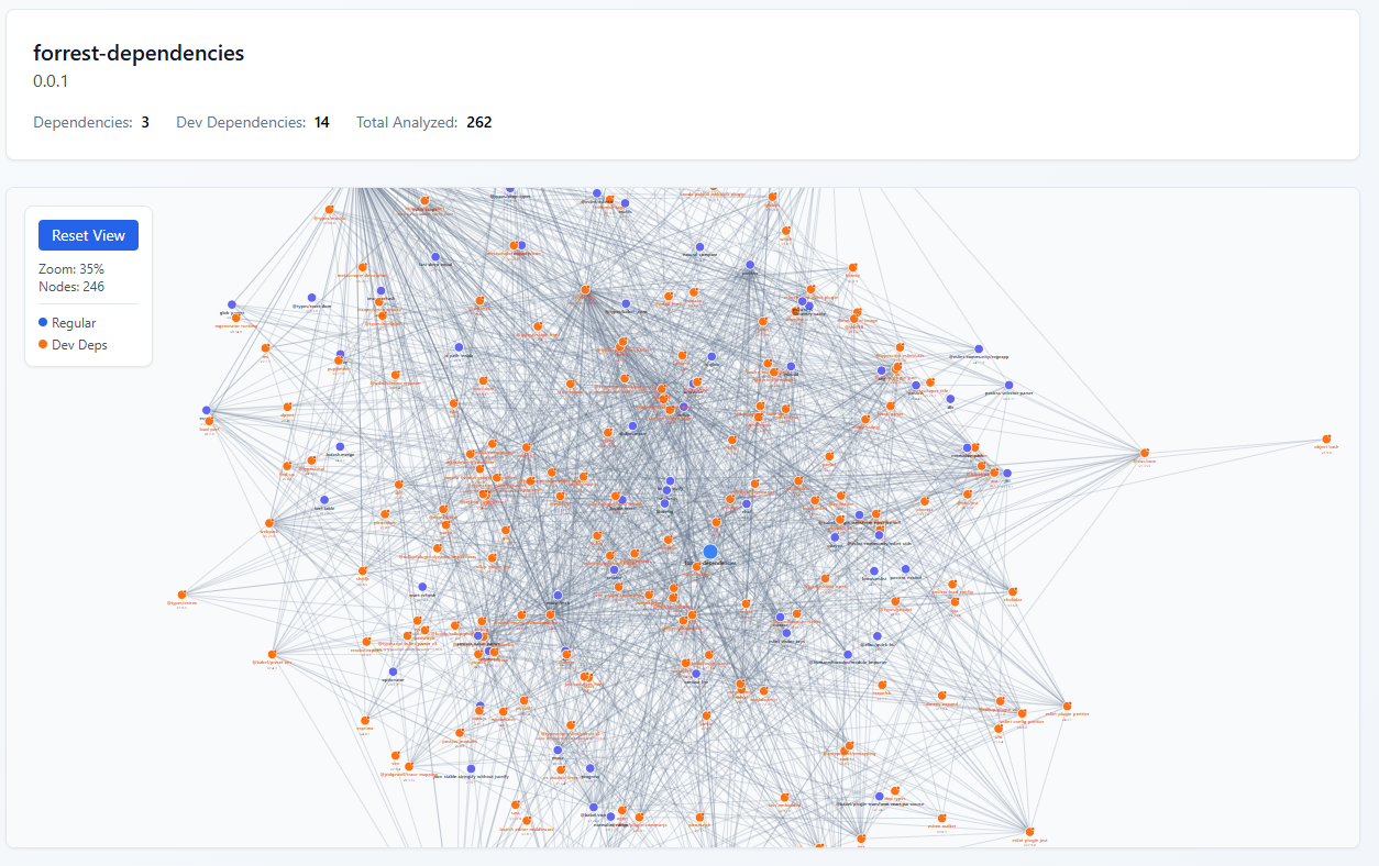 Also Forrest gives you a map view, where all dependencies and devDependencies are linked together.